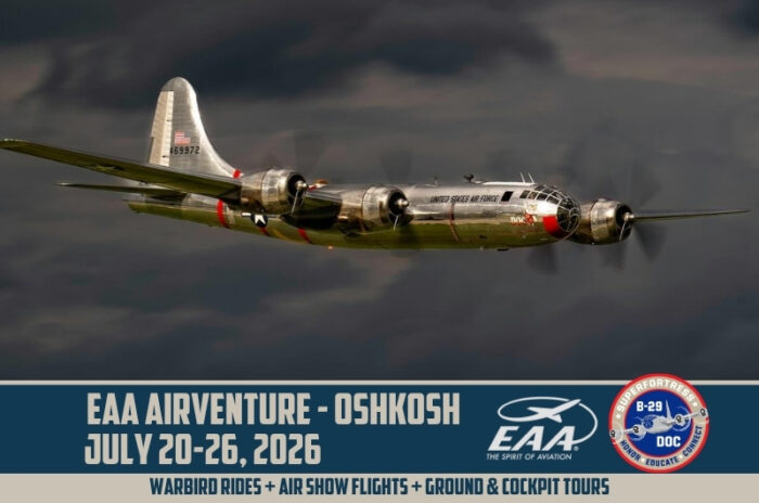 B-29 DOC will once again be a featured performer at EAA AirVenture Oshkosh (July 20-26, 2026), in Oshkosh, WI. DOC’s... Read More